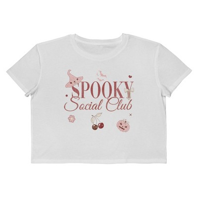 Social Collective Women Spooky Social Club Cherries Short Sleeve Graphic Cotton Cropped Loose T-shirt