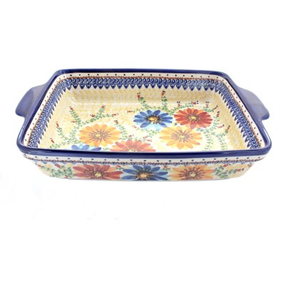 Blue Rose Polish Pottery 856 Ceramika Artystyczna Small Rectangular Baker