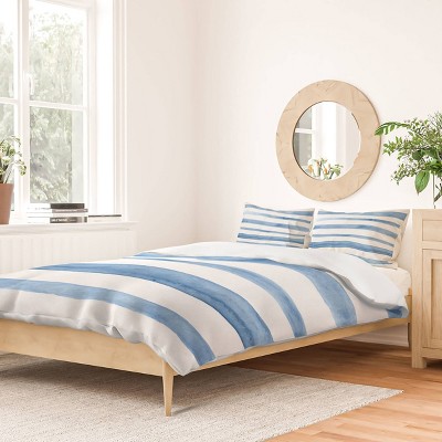 Deny Designs Kelly Haines Blue Watercolor Stripes Queen/Full Duvet and Sham Set (2-3pc Set)