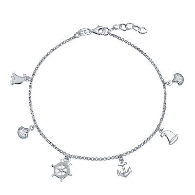 Bling Jewelry Multi Charm Dangle Anchor Sailboat Ship Wheel Sea Shell Anklet Ankle Bracelet Sterling Silver Adjustable 9 To 10 Inch