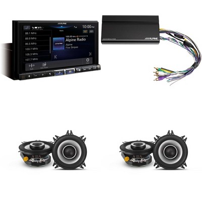 Alpine iLX-407 7-Inch Multimedia Receiver Apple Carplay and Android Auto & 2 Pairs Alpine S2-S40 Type S 4" Coax Speakers w/ Power Pack