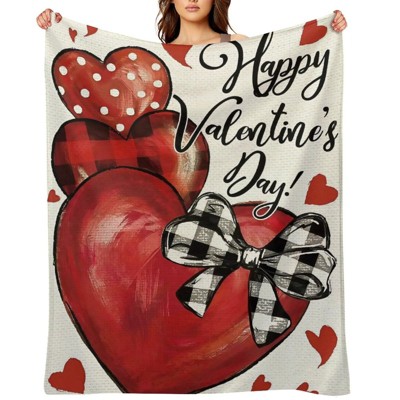 Valentine's Day Plaid Heart Love Throw Blanket - Ultra Soft, Anti-Pilling for Camping & Gifting 60x80 inches
