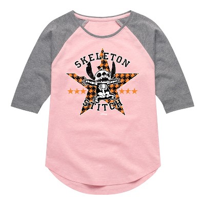 Girls' - Lilo and Stitch - Skeleton Stitch Shirt Tail Raglan Graphic T-shirt