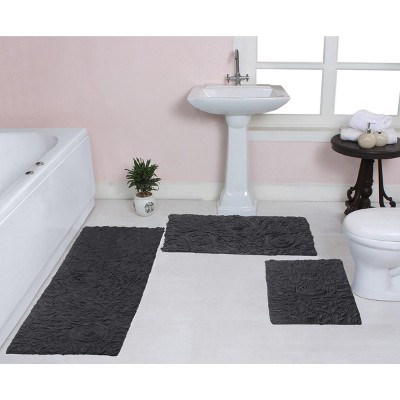 Bell Flower Collection Cotton Floral Pattern Tufted Bath Rug Set Pack of 3 - Home Weavers