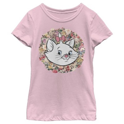 Girl's Aristocats Floral Marie White Kitten T-Shirt