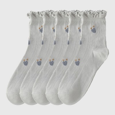 Anna-Kaci 6pk Women's Ankle Socks with Tulip Embroidery