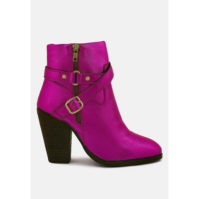 CAT-TRACK Fuchsia Metallic Leather Ankle Boots