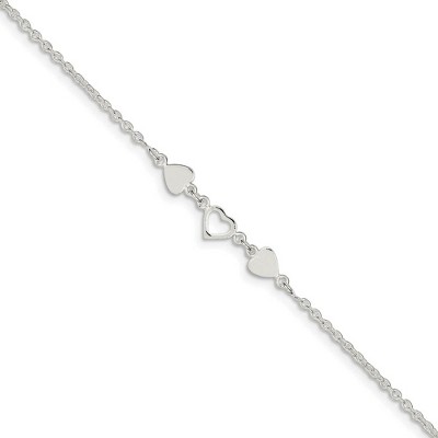Black Bow Jewelry Sterling Silver Polished Hearts Anklet, 9 Inch