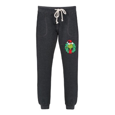 Women's The Grinch Grinch Wreath Graphic Fleece Joggers - Heather Charcoal - Small