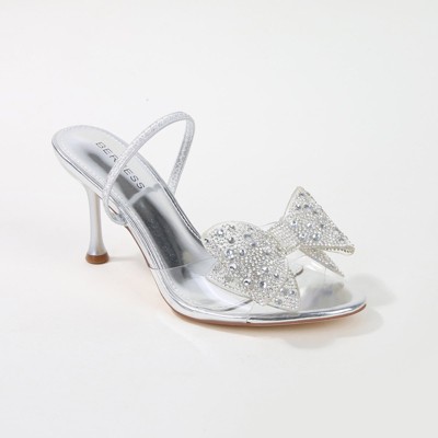 Berness Women's Fonda Clear Heeled Sandals with Rhinestone Bow