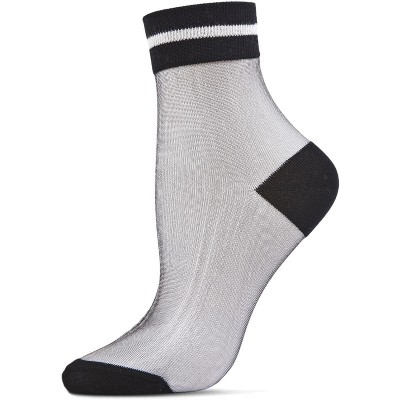 Memoi Sheer See-Through Ankle Socks with Striped Cuff