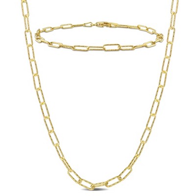 EVERLY JEWELRY | Sterling Silver 3mm Paperclip Chain Necklace and Anklet Set, 16 in + 9 in-Multiple Metal Color Options