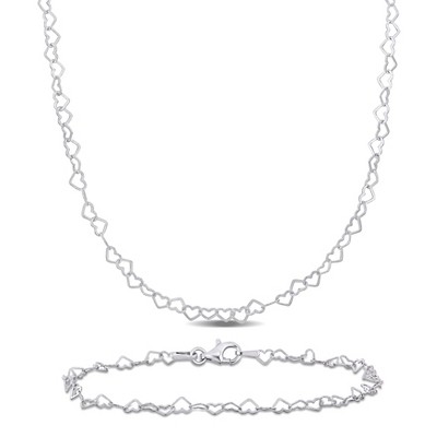 EVERLY JEWELRY | Sterling Silver 3mm Heart Link Chain Necklace and Anklet Set -16 in + 9 in