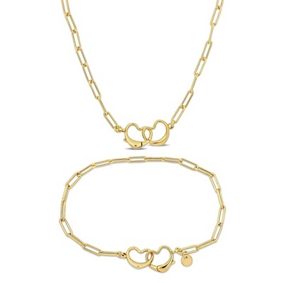 Adornia Tarnish Resistant 14k Gold Plated Heart Paper Clip Chain Set