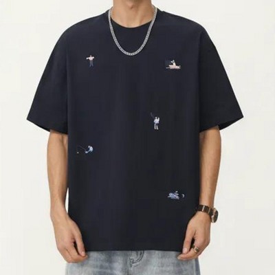 Anna-Kaci Men's Short Sleeve Graphic T-Shirt with Minimal Embroidered Details