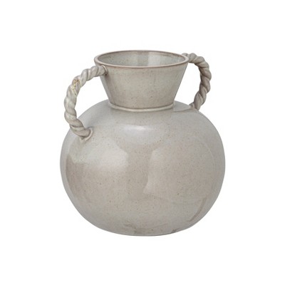 Slickblue Vintage Rustic White Metal Flower Pitcher Vase Small Decorative Jar for Tabletop or Shelf