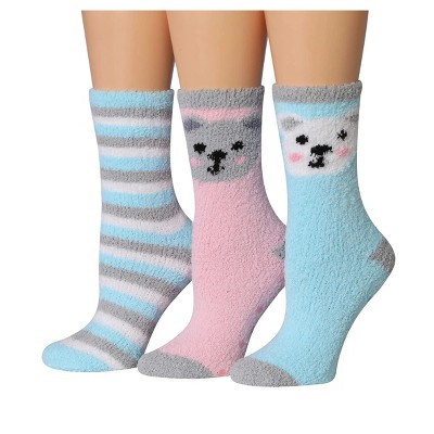 Tipi Toe Women's 3 Pairs Cozy Microfiber Anti-Skid Leopard Stripes Patterned Soft Fuzzy Crew Socks