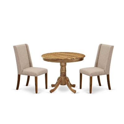 3-Piece Linen White Finish Solid Wood Top - Round Dining Room Set - Seats-4