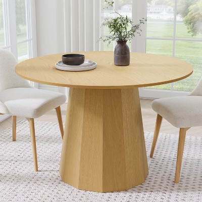 PexFix Solid Wood Farmhouse Dining Table Round Wood Texture Top with Cross X Base for Modern Dining Rooms & Family Gatherings