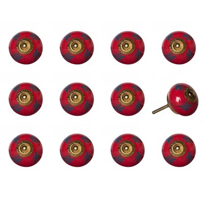 HomeRoots Set of Eight Blue And Red Ceramic And Metal Drawer Pull Knobs
