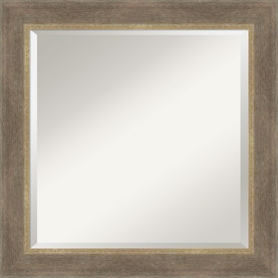 Amanti Art Driftwood Tan Beveled Wood Framed Bathroom Vanity Wall Mirror