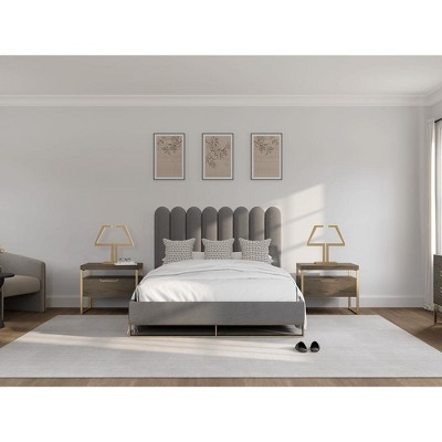 Queen Edith Modern And Contemporary Fabric Headboard Dark Gray - Baxton Studio: Nailhead Trim, Adjustable Height