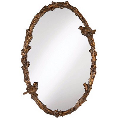 Uttermost Oval Vanity Accent Wall Mirror Rustic Antique Gold Gray Metal Frame 23" Wide for Bathroom Bedroom Living Room Home House