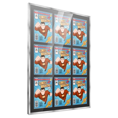 PosterPalooza | Comic Book Frame for 9 Golden Age Comics 1938 - 1956 - Silver on Black Comic Frame - 29x38.5