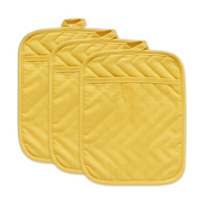 Design Imports Quilted Potholder Set 3 Piece Yellow 7X9"