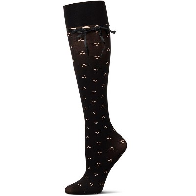 Memoi Women's Inner Dot Eyelet Knee High Trouser Socks