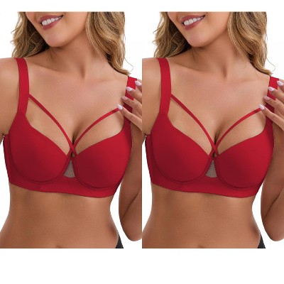 INSPIRE CHIC Women's 3/4 Cup Push-Up Soft Underwire Support Front Cross Lingerie Adjustable Straps Everyday Bras 2 Packs