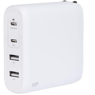 Monoprice 100W 4-Port GaN Charger - Fast Charge, Foldable, PD Technology, 2x USB-C, 2x USB-A, for MacBook, iPad, iPhone, Galaxy