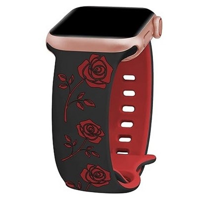 HTUTWOO Rose Engraved Apple Watch Band, Floral Sport Silicone Strap 38/40/41/42/44/45/46/49 mm for iWatch Series 11 10 9 8 7 6 5 4 3 2 1 SE Ultra