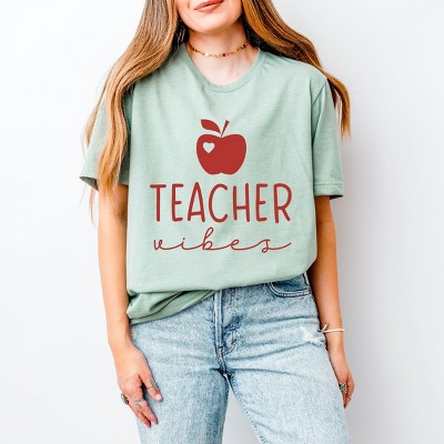 Simply Sage Market Teacher Vibes Cursive Apple Short Sleeve Tee