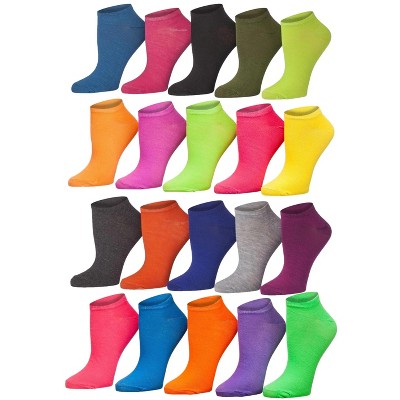 Tipi Toe Women's 20 Pairs Eclectic Vibrant Palette Colorful Patterned Low Cut/No Show Socks