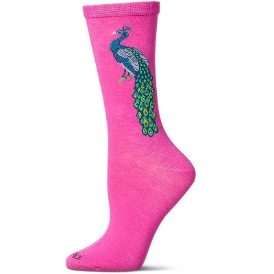 Memoi Women's Peacock-Themed Rayon Blend Novelty Crew Sock Fuchsia 9-11