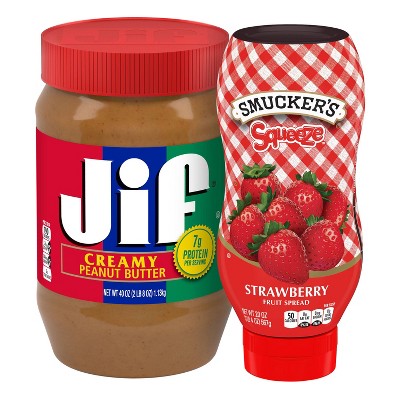 Jif 40oz Creamy Peanut Butter + Smuckers 20oz Squeeze Strawberry Fruit Spread