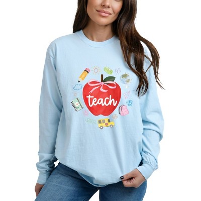 Teach Apple Watercolor - Garment Dyed Long Sleeve