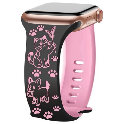 HTUTWOO Cute Apple Watch Band, Cats and Dogs Engraved Silicone Strap 38/40/41/42/44/45/49mm for iWatch Series 10 9 8 7 6 5 4 3 2 1 SE Ultra