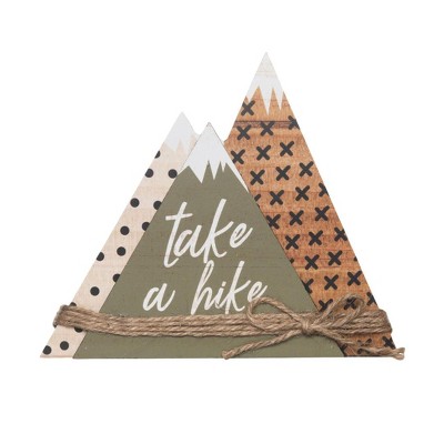 Transpac Wood 7.75 in. Green Spring Take A Hike Layered Mountain Decor