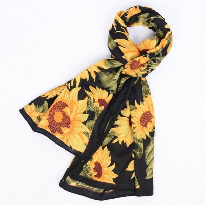 Wrapables Lightweight Sheer Silky Feeling Georgette Scarf, Bouquet on Black
