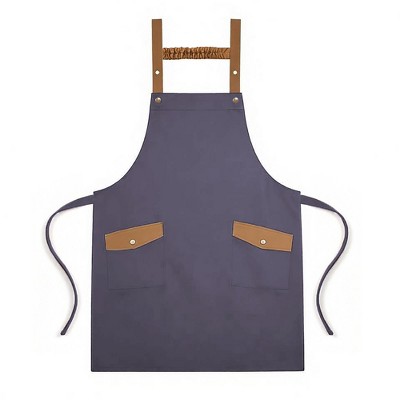 Alilang Canvas Kitchen Apron with Adjustable Shoulder Straps Multi Pocket Work Apron for Cooking Cleaning