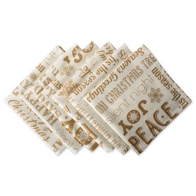 Design Imports Christmas Printed Napkin Set 6 Piece, Gold Christmas Collage, 20X20"