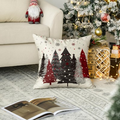 Red Christmas Pillow Covers 18x18 Set of 2 Farmhouse Snowman Snowflake Xmas Tree Decorative