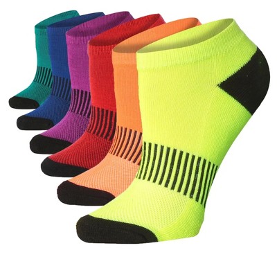 Vibrant Colors Black Toe No Show Athletic Socks - 6 Pack