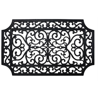 HomeRoots 18" X 30" Black Rubber Scrollwork Welcome Outdoor Door Mat