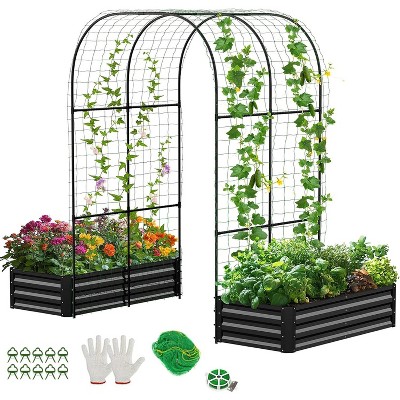 Metal Garden Arch Trellis, 7.3Ft Black for Raised Beds, Plant Support for Cucumbers & Climbing Vegetables
