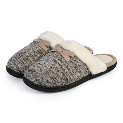Roxoni Women's Memory Foam House Fleece Trim Knit Sweater Slipper