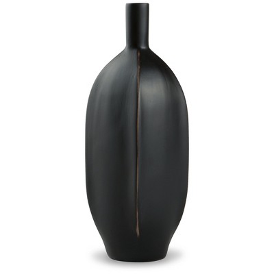 Storied Home Pinched Organic Shape Terracotta Vase, Matte Black