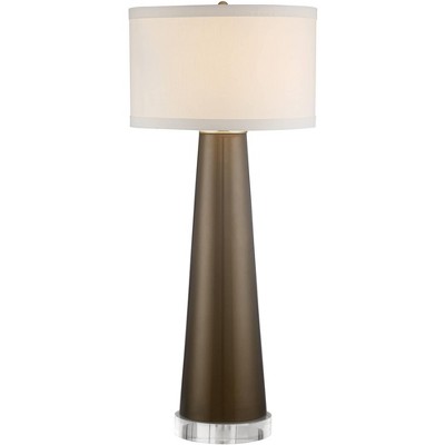 Possini Euro Design Cadence Modern Table Lamp with Square White Marble Riser 30" Tall Glass Column White Shade for Bedroom Living Room Bedside Office
